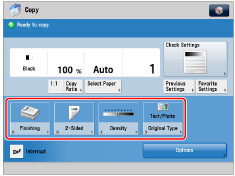 You can register modes in the shortcut keys displayed on the Copy screen. You can register up to five desired buttons from [Options] and [Favorite Settings].