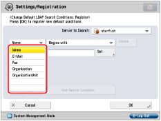 The organization/organization unit can be used as search categories only if the information has been registered on the LDAP Server.