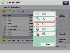 » Scan and Send » Storing New Addresses » Registering an I-Fax Address