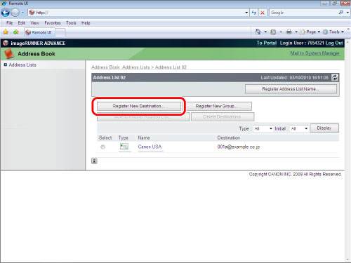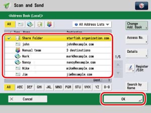 Click [Address Book] → [Address List 01] on the Address List screen.