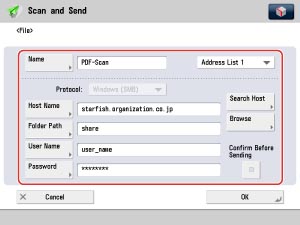 \\Computer name\PDF-Scan Enter the computer name that you checked in step 1 in " Creating a Shared Folder" ( For Windows), or step 2 in " Creating a Shared Folder" ( For Mac).