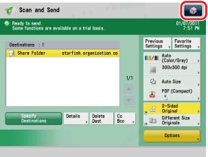 If <Check the login destination, user name, and password> is displayed, you cannot set the login/destination from the machine.