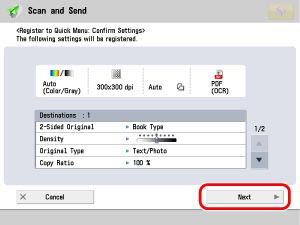 The Quick Menu is a function that increases the efficiency of operations that use functions of the machine for an office. You can create and register a series of frequently used functions such as Copy, Scan and Send, and Scan and Store in one button.