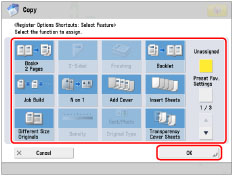 Select the [Options] mode you want to assign as a shortcut → press [OK].