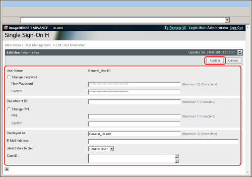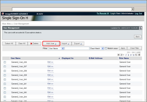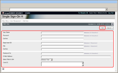 » MEAP » Menu for Administrators » Setting the User Information for SSO-H » Registering/Editing User Data for Local Device Authentication