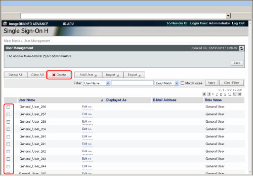 The user data that is logged in as the System Administrator (Administrator) cannot be deleted.
