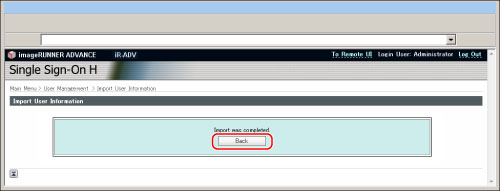 Import the user data created in the file format used for SDL and the Local Device Authentication of SSO-H. (File extension: "ldif")
