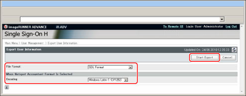 Export the user data in the file format used for SDL and the Local Device Authentication of SSO-H. (File extension: "ldif")