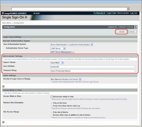 Do not set 'Canon Peripheral Admins' as the primary group.