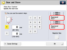 Press [Register Size] → [Registered Size 1] or [Registered Size 2].