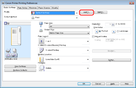 » Print » Printing from a Computer (Windows) » Registering a Profile for Printing