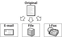 The Send function enables you to send scanned image or document data to file servers, or send it by e-mail or I-fax. A variety of file formats are supported (JPEG, TIFF, PDF, XPS, OOXML), which offer you greater flexibility in accommodating digital workplace environments.