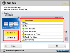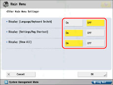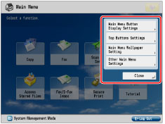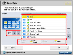 If the number of function buttons exceeds the number of buttons in the layout specified for <Main Menu Button Display Settings>, the excess buttons are displayed after page 2 of the Main Menu screen. A maximum of 16 buttons can be displayed on the Main Menu screen.