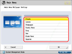 To specify the settings of the Main Menu screen, you must log in to the machine as an administrator. As a default, system manager settings (System Manager ID/System PIN) are set on the machine. Thus, the administrator must log in by entering the System Manager ID and the System PIN on the Settings/Registration screen. The default setting for both the System Manager ID and System PIN is '7654321'.