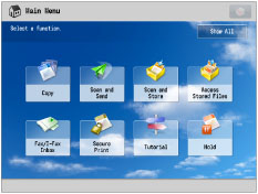 If you press [Show All] on the Main Menu screen, all buttons are displayed in the default order, even if you have altered the layout of the buttons. To return to the customized screen, press [Show All] again.