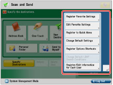Registering/Editing/Deleting Favorite Settings Buttons for Scan and Send