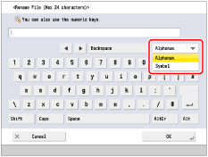 When entering characters on the SSO-H authentication screen or in MEAP application functions, the screen you actually see may be different.