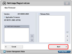 Applicable Firmware: Displays the new firmware that is applicable with the machine.