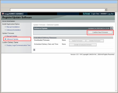 Click [Delivered Update] → [Confirm New Firmware].