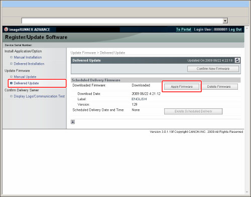 The firmware downloaded with Scheduled Update can also be applied.