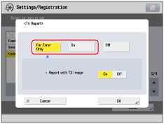 If you want to print part of the sent document on the Send TX Report, press [On] for <Report with TX Image>.