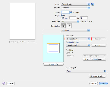 Confirm that [2-sided Printing] is selected for [Print Style].