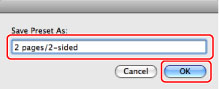 Enter a name, for example "2 pages/2-sided", in [Save Preset As] → click [OK].