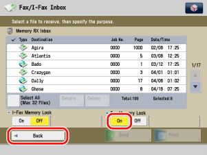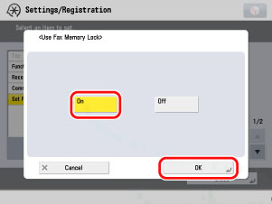 You can specify the Memory Lock and Handle Files with Forwarding Error settings. Memory Lock settings must be specified in both Settings/Registration and the Memory RX Inbox screen.