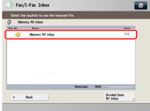 Select [Fax/I-Fax Inbox] from the Main Menu screen.