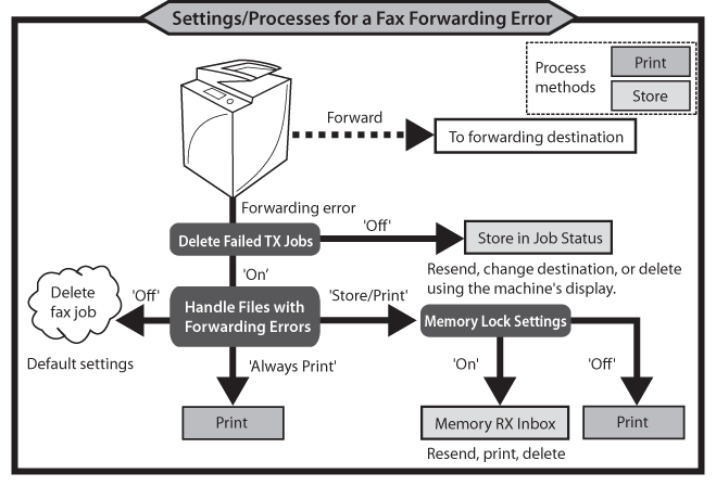 When a forwarding error occurs, the machine processes the fax as shown below.