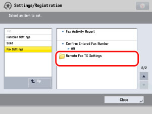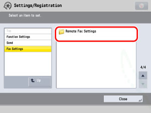 → [Function Settings] → [Send] → [Fax Settings] → [Remote Fax Settings].