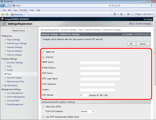 (This refers to the interval that the imageRUNNER ADVANCE machine goes to the mail server to check for e-mail) |