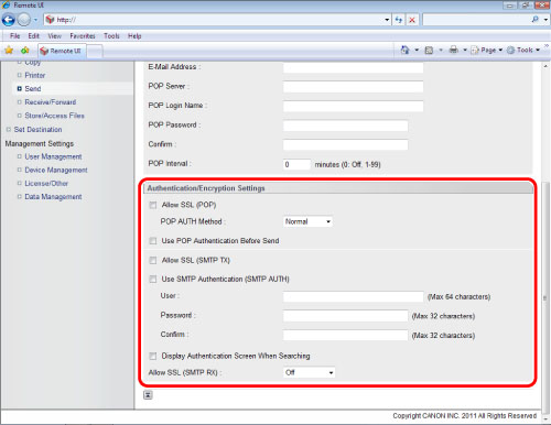 It is not necessary to specify the settings on this page when accessing a server that does not require transmission authentication.
