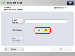 Set the maximum data size for sending lower than the data limit for the mail server. If you enter '0' MB as the data size, there is no size limit on the data that is sent. |