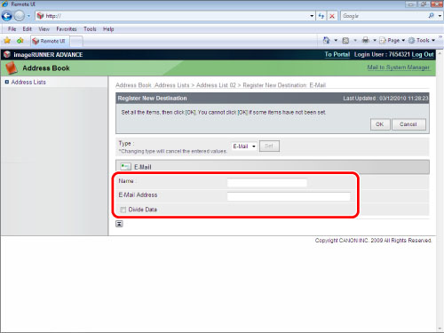 E-Mail Address Acquired for the imageRUNNER ADVANCE Machine