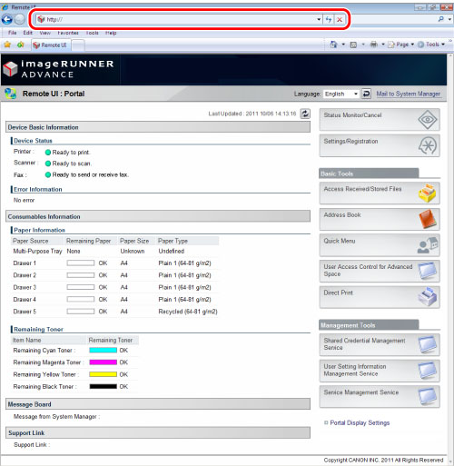 imageRUNNER ADVANCE Setting