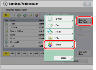 If you register a group that includes multiple e-mail addresses in the address book, you can send to all of the e-mail addresses included in that group at once by selecting that group as the destination.