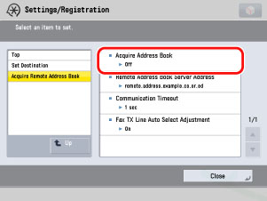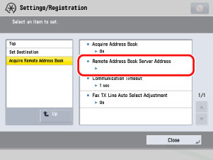 → [Set Destination] → [Acquire Remote Address Book] → [Remote Address Book Server Address].
