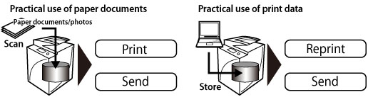 The Fax and Send functions enable you to send faxes and e-mails with attachments, and send data to a computer by SMB, as alternatives to a paperless fax. You can also select the file format at the time of sending.