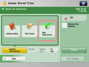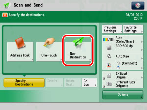 Press [Scan and Send] on the Main Menu screen → [New Destination].