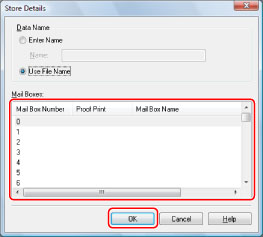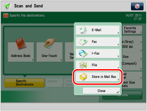 Press [Store in Mail Box] → select the Mail Box number you want to store in → press [OK].
