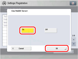 Follow the procedures below to set [Use WebDAV Server] to 'On'.