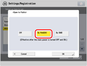 → [Function Settings] → [Store/Access Files] → [Advanced Space Settings] → [Open to Public].