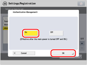 Follow the procedures below to set [Authentication Management] to 'On'.