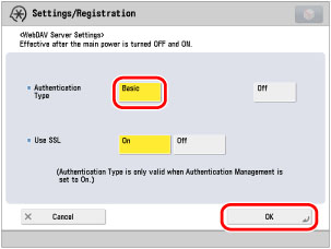 Follow the procedures below to set [Authentication Management] of the WebDAV Server settings to [Basic].