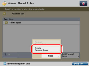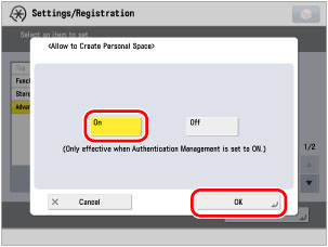 → [Function Settings] → [Store/Access Files] → [Advanced Space Settings] → [Allow to Create Personal Space].
