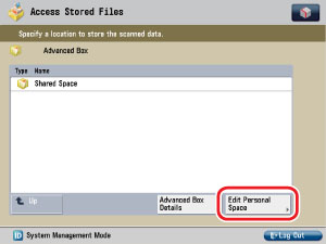 Press [Scan and Store] or [Access Stored Files] on the Main Menu screen → press [Advanced Space].