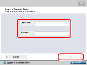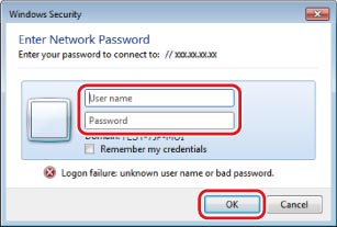 Enter the user name and password that were set in step 5 in "Registering User Information" → click [OK].