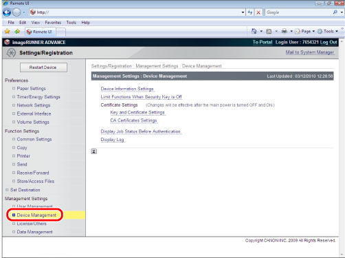 → [Management Settings] → [User Management] → [System Manager Information Settings].