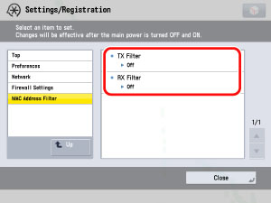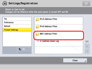 → [Preferences] → [Network] → [Firewall Settings] → [MAC Address Filter].